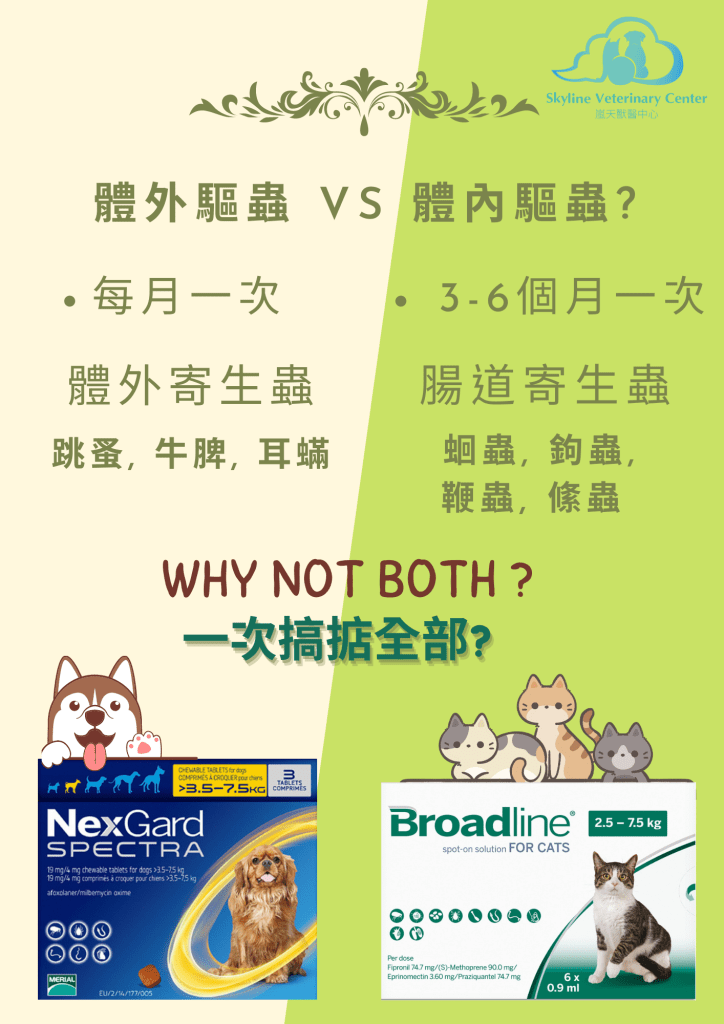 - 每個月定期用體外杜蟲, 三個月一次體內杜蟲